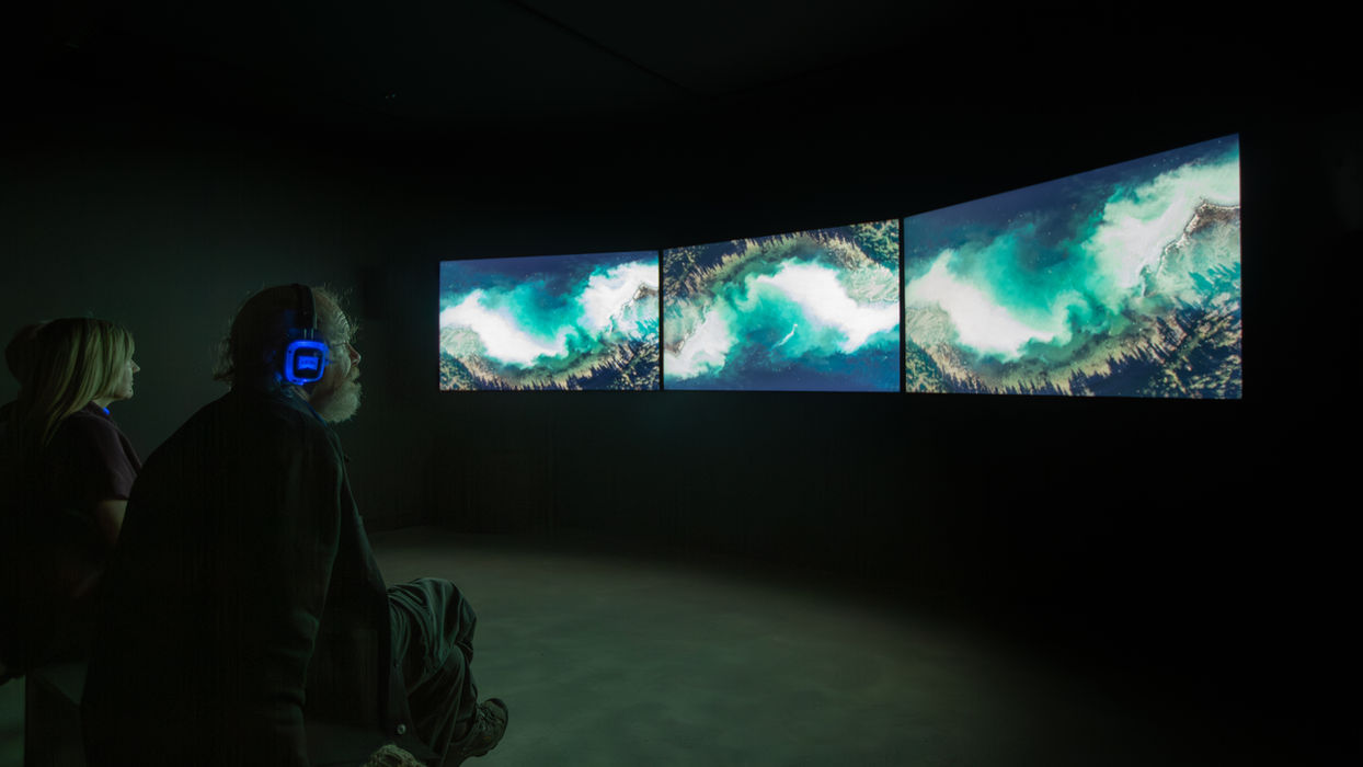Nettie then collaborated with fellow filmmaker Scott Smith to create the kaleidoscopic 3 channel video triptych GO FISH (2023) which captures the dizzying patterns of the herring Spawn in the Salish Sea.